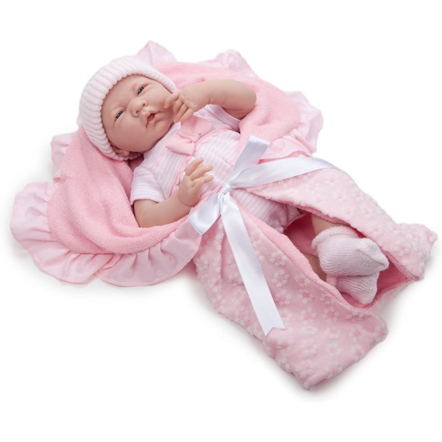 Muñeca de vinil que mide 38 cms con piernas, cabeza y brazos móviles. Luce como una bebé real con pliegues y arruguitas. Incluye mantita y accesorios.