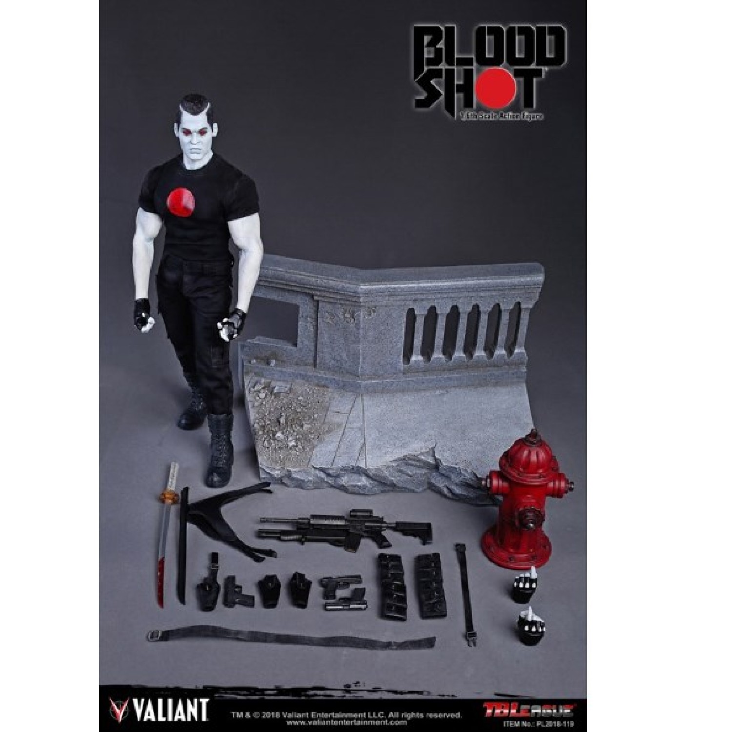 Regresado de entre los muertos e infundido con la nanotecnología de vanguardia, Bloodshot se convirtió en una máquina de matar casi imparable. Su mayor fuerza, velocidad, resistencia y curación lo convirtieron en el arma perfecta. Después de desafiar su programación y escapar de sus maestros en Project Rising Spirit, Bloodshot ahora lucha para redescubrir el secreto de su verdadera identidad ... pero sigue obsesionado por el pasado que casi lo destruye. Lista de empaque: 1) 1 x cabeza esculpir 2) 1 x cuerpo masculino sin costuras de la Liga TB con esqueleto metálico 3) 2 pares x manos intercambiables 4) 1 x camiseta 5) 1 par x pantalones 6) 1 par x botas 7) 1 x cinturón 8) 2 x correas de cartucho 9) 1 x espada samurai 10) 1 x funda para la espada con correa de transporte 11) 3 x pistolas con fundas 12) 1 x correa para sujetar 1 pistola al muslo 13) 1 x arma combinada 14) 1 x boca de incendio 15) 1 x base