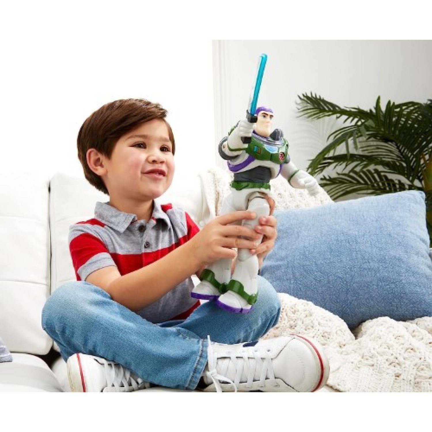 Muñeco de 29 cm (alto) con 13 puntos de articulación vestido en su traje de Ranger Alfa. Recrea escenas de la película "Lightyear", cuenta con más de 30 sonidos en total.
