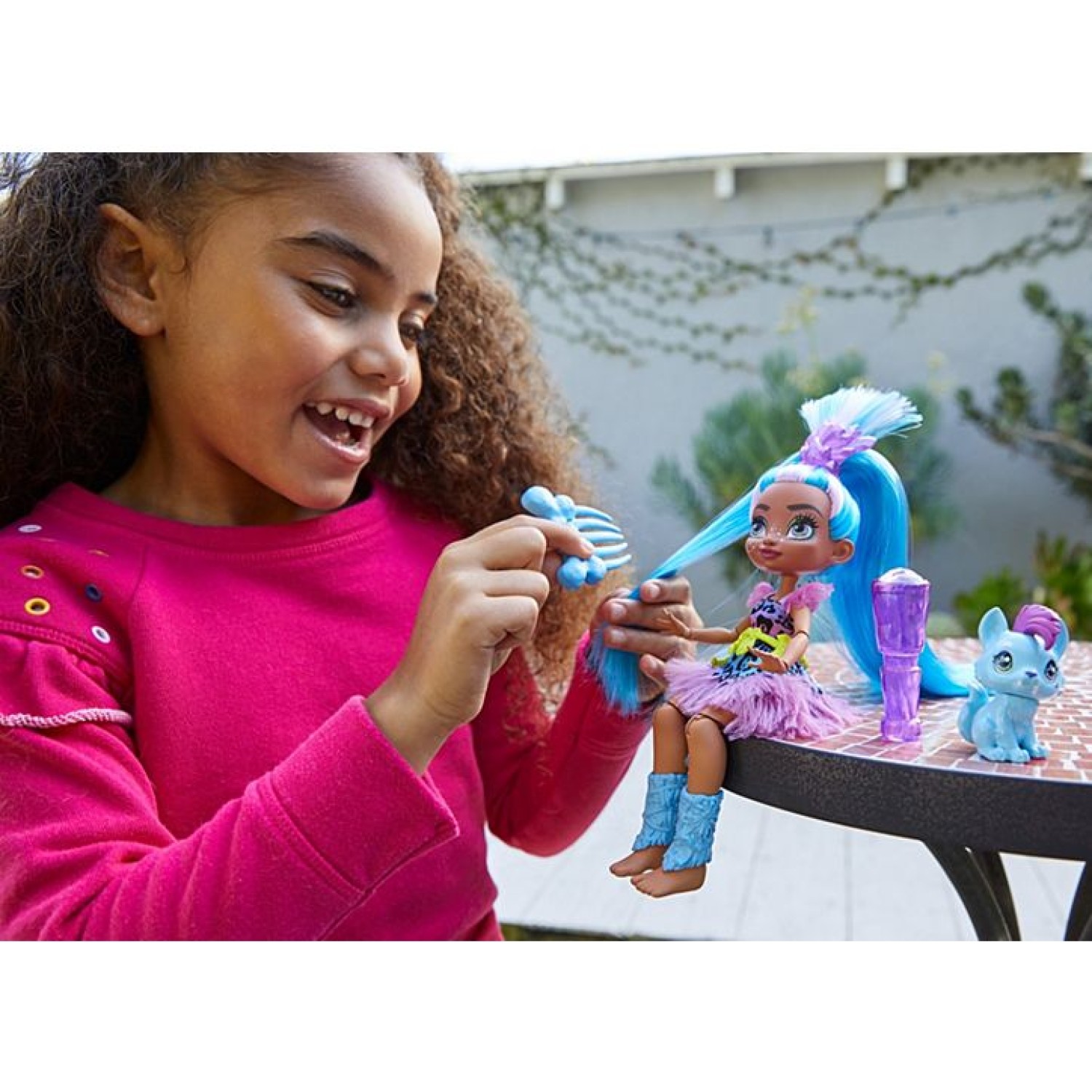 Colección de muñecas pre-históricas adelantadas a su tiempo, que vienen con mascota y accesorios. Contenido: Muñeca de vestir articulada que mide 25 cm, mascota de juguete y accesorios.