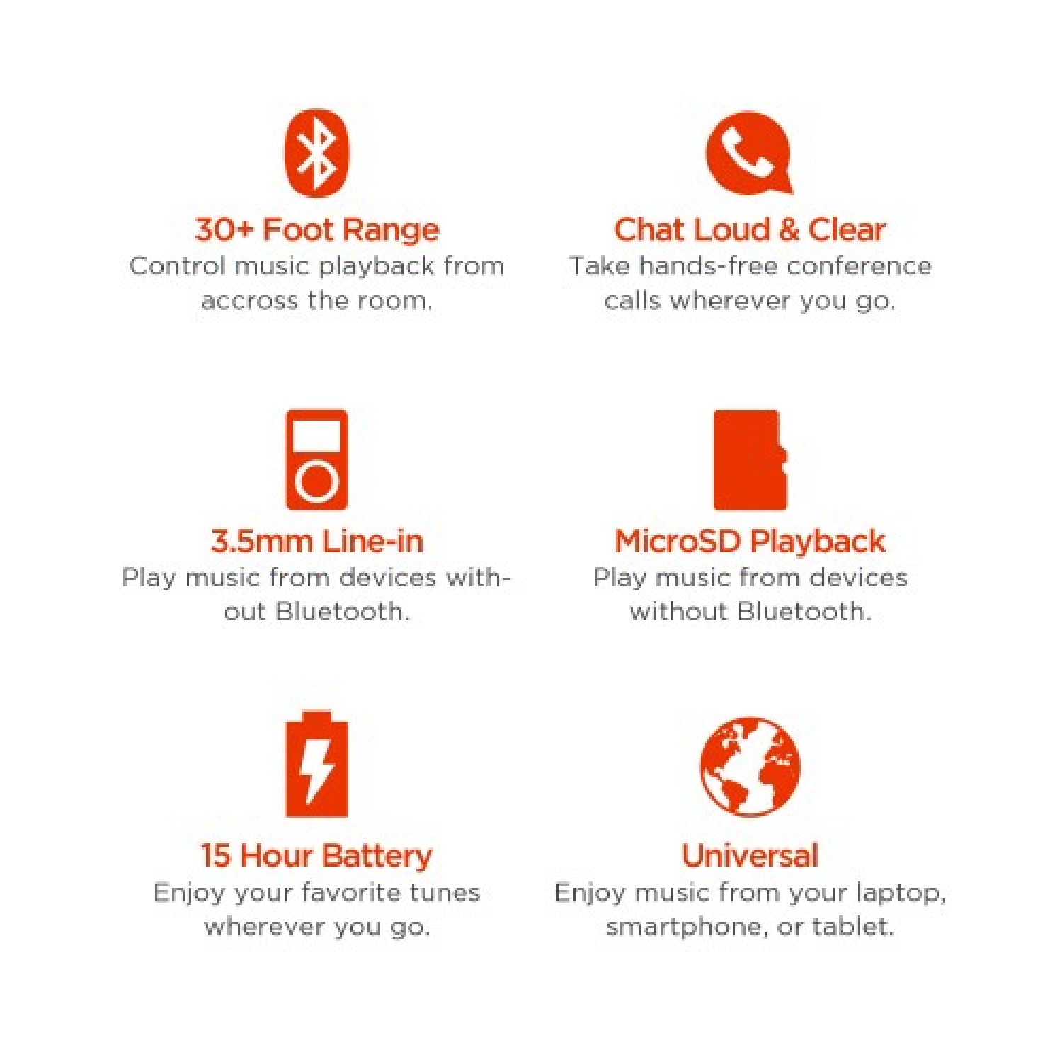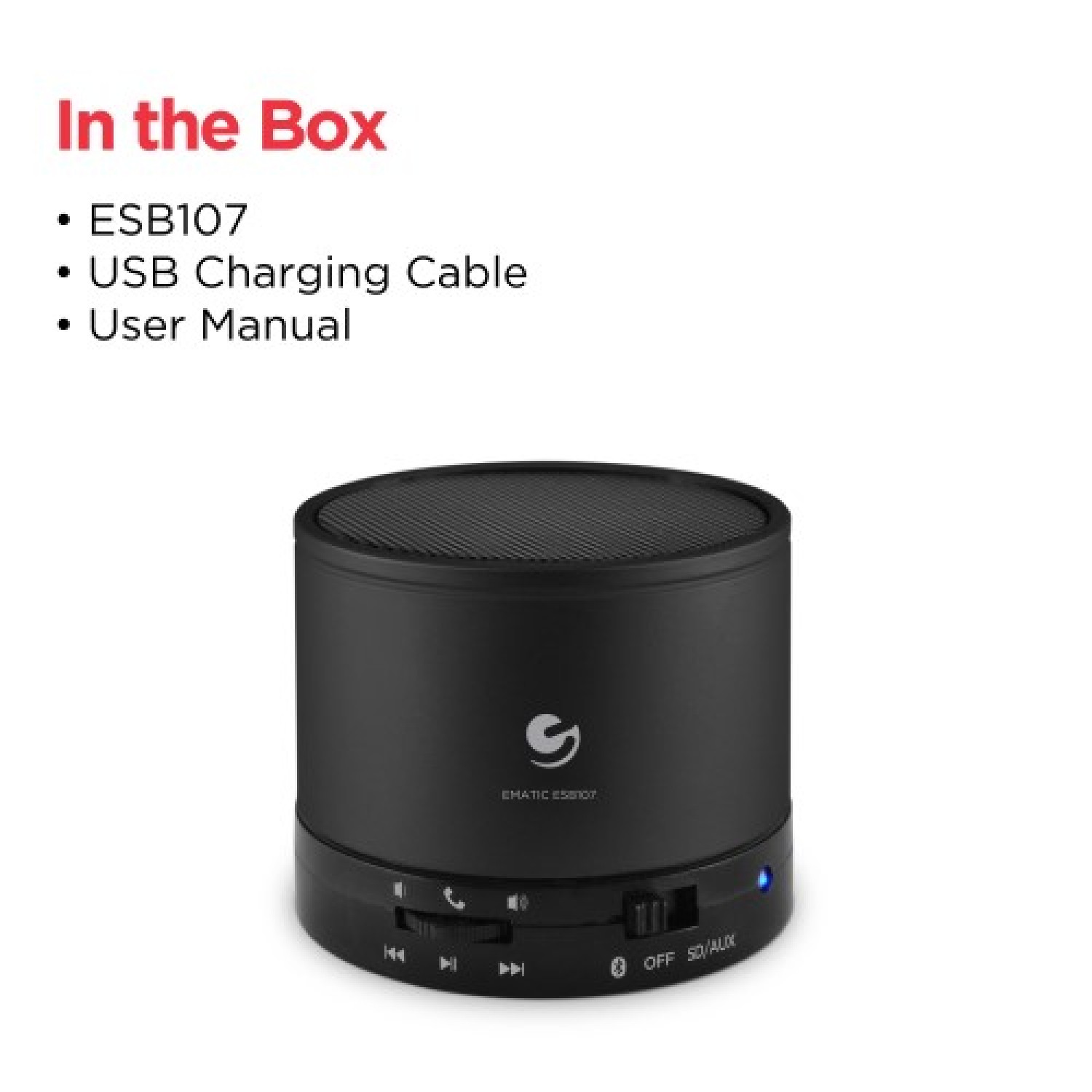 El altavoz y el altavoz inalámbricos Ematic (ESB107) le permiten disfrutar de su música con una excelente calidad de sonido mientras viaja. Para transmitir música, simplemente conecte su teléfono, computadora u otros dispositivos con Bluetooth para una fiesta de baile animada e ininterrumpida. Este altavoz inalámbrico portátil con micrófono incorporado le permite atender llamadas desde cualquier lugar de la habitación. La tecnología de reproducción microSD de manos libres proporciona un sonido de alto calibre sin almacenamiento en búfer, retraso ni estática. Compacto y liviano, también cuenta con una función de entrada de línea para dispositivos sin tecnología Bluetooth. El diseño elegante pero que ahorra espacio es un complemento apropiado para la oficina, el cine en casa o el dormitorio y proporciona una gran facilidad de transporte. ¡No se limita a música y llamadas telefónicas, el altavoz inalámbrico Bluetooth es óptimo para escuchar audiolibros y proporcionar sonido envolvente para películas y juegos! ¡Desde picnics familiares hasta la limpieza de la casa, permita que la música de sus dispositivos se lleve más lejos y con mejor calidad con la ayuda del altavoz y el altavoz inalámbricos Ematic! Alcance de más de 30 pies dependiendo del entorno Responde llamadas y funciona como un altavoz, reproducción de MicroSD Disfrute de películas y juegos desde su computadora portátil, tableta o teléfono inteligente alto y claro Entrada de línea para usar con dispositivos sin Bluetooth
