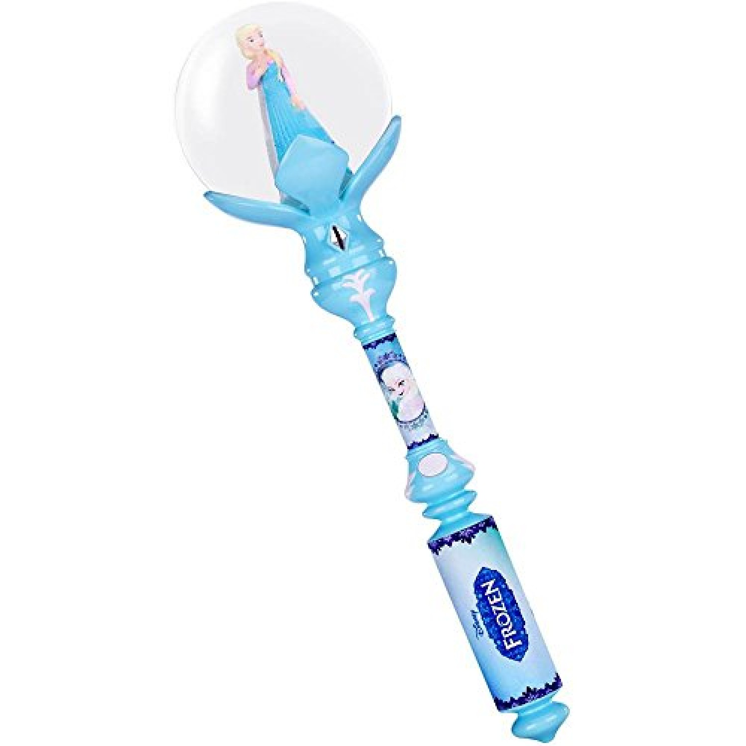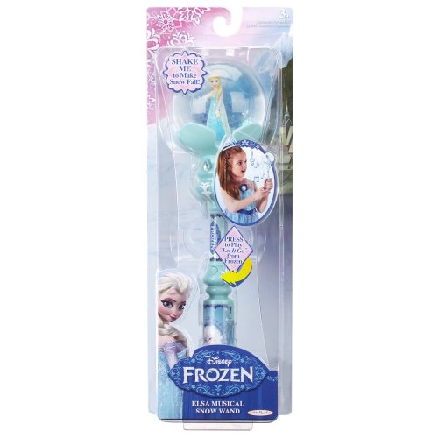Presiona el botón y escucha la canción de la película. Agita la varita y verás la escarcha girar alrededor de Elsa.