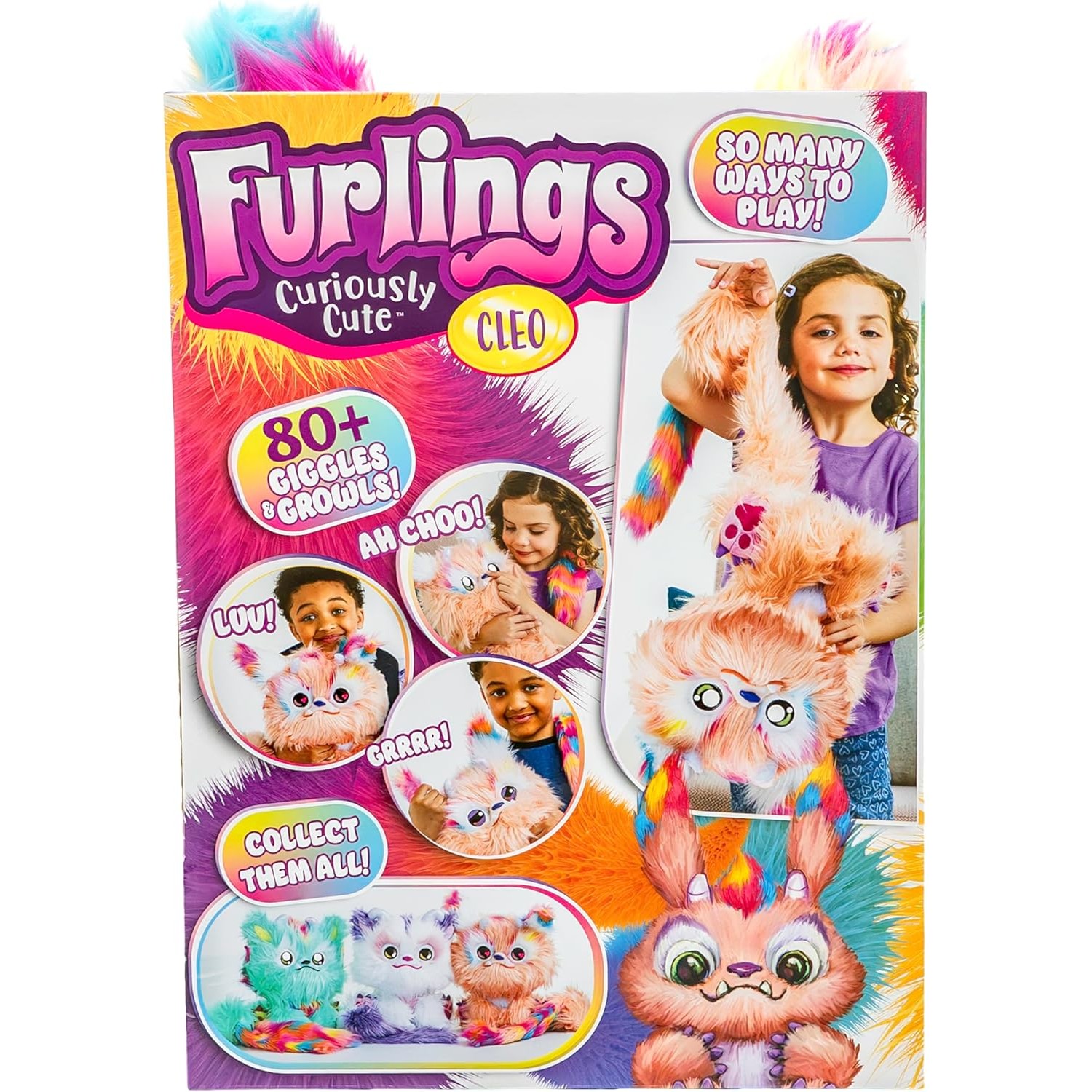 ¡Bienvenidos al mágico mundo de los Furlings donde la imaginación se mezcla con la ternura! Los Furlings son peluches interactivos que cautivan a los pequeños con su diseño curiosamente bonito y sorpresiva simpatía. Los Furlings son muy adorables con su larga cola, ojos tiernos y animados, y pelaje esponjoso. Cada Furlings cuenta con más de 80 sonrisas y gruñidos, y están listos para reaccionar a los patrones de su juego de sus hijos.