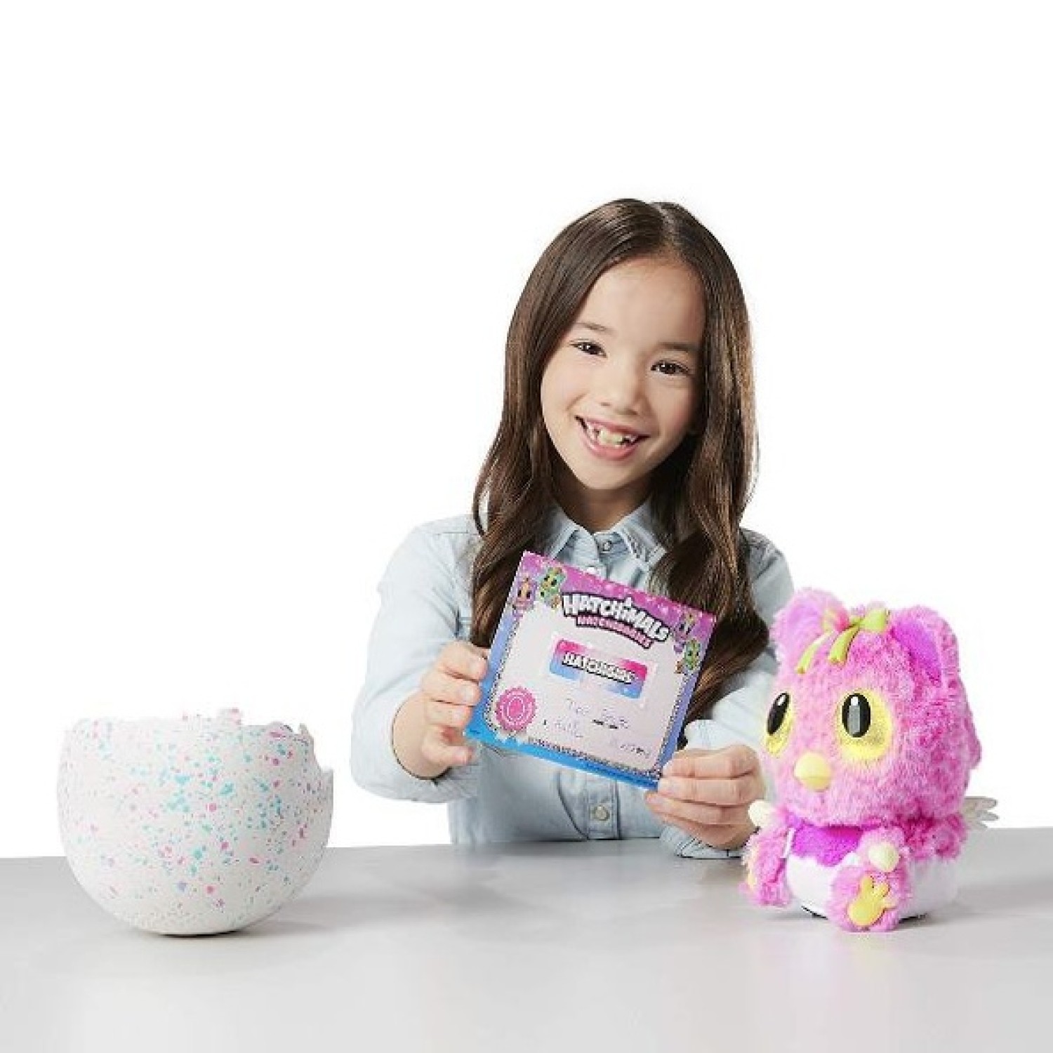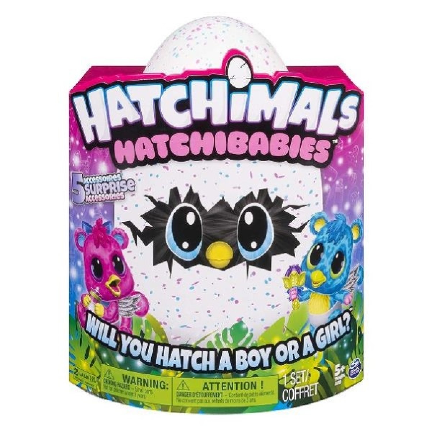 Nuevos huevos en movimiento! ¡Para siempre bebés! Accesorios secretos! HatchiBabies ha llegado, ¡y tienen muchas sorpresas para ti! ¡Por primera vez en la historia, podrías incubar a un niño o una niña! Para averiguar quién está dentro, abrace, toque, acurrúquese y dale una palmadita al huevo de tu HatchiBaby. ¡Cuando te escuchen, responderán con lindos sonidos! Cuanto más juegues con estos bebés para siempre, ¡más EGGcitados se pondrán! ¡Coloca el huevo en una mesa y realmente se moverá solo! Cuando veas que los ojos del arco iris brillan a través de la cáscara, sabrás que tu HatchiBaby está listo para eclosionar, ¡pero no pueden hacerlo sin ti! Frota el huevo para alentarlos, y retira la cáscara. ¡El mensaje secreto que se encuentra en el interior revelará si has tramado un Hatchiboy o un Hatchigirl Cheetree! (¡No olvides completar el certificado de nacimiento!) Al sacar tu HatchiBaby, sus grandes ojos que cambian de color te dirán cómo se sienten, sus picos se moverán y se balancearán de un lado a otro; ¡a la vida! Ahora puede alcanzar la carcasa, sacar la trona y cuatro accesorios interactivos ocultos: ¡un sonajero, una botella, un cepillo para el pelo y un compañero de peluche! ¡Úsalos para alimentar, eructar, hacer cosquillas y acurrucarse con tu bebé! Cuanto más juegues, más respuestas desbloquearás. Enséñele a su bebé a hablar o jugar juegos nuevos como "¡peek-a-boo!" ¡Lo mejor de todo es que estos Hatchimals siguen siendo bebés para siempre! ¡Con grandes y adorables ojos y lindos arcos para el cabello, Cheetree HatchiBabies son adiciones adorables para tu familia! ¡Traiga a casa un HatchiBaby de su propio rebote y descubra todo un mundo de sorpresas!