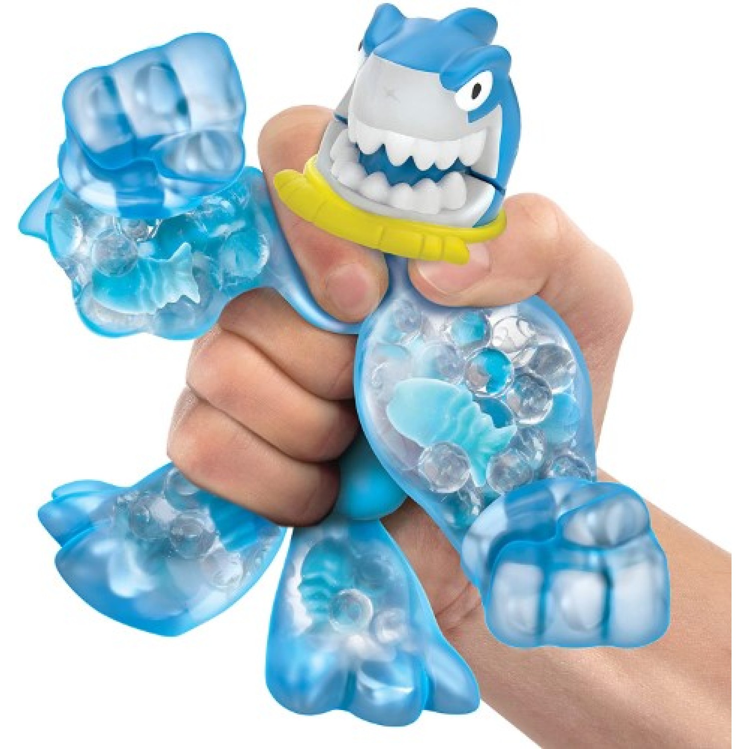 Los "Heroes of Goo Jit Zu" son muñecos para apretar y estirar. Conoce la nueva dino-experiencia con este tiburón de mandíbula móvil y blanda textura.
