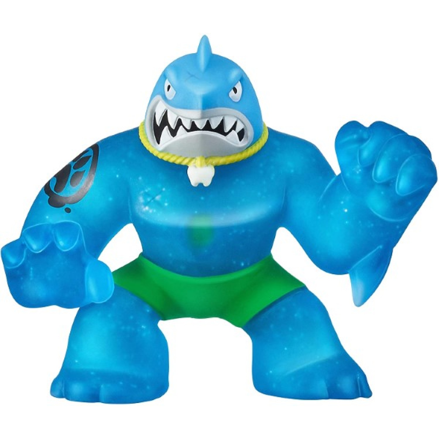 ¡Los Heroes of Goo Jit Zu son las muñecos más blandos, elásticos y pegajosos de la historia! ¡Usa su poder viscoso para derrotar al mal y salvar el día! Incluye 2 héroes exclusivos de Goo Jit Zu: Thrash el tiburón y Rockjaw el cocodrilo.Estas figuras de acción presentan una característica exclusiva de brillo en la oscuridad.