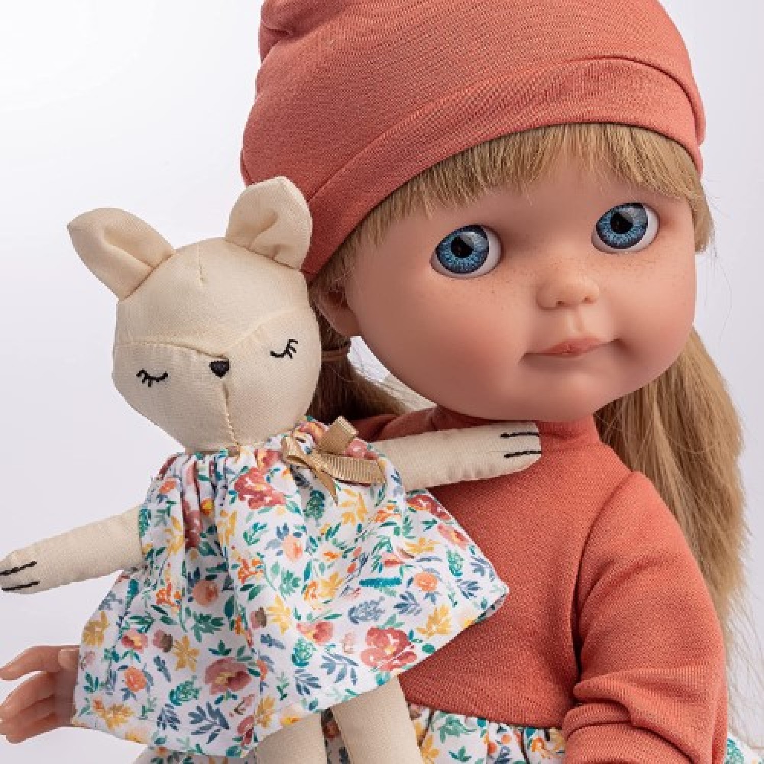 Muñeca de 38 cm (alto) con lindo rostro diseñado por Berenguer que viste prendas de la colección Colección "Nature" con acentos florales y tonos tierra. Fabricada completamente en vinilo, suave al tacto, resistente y duradera. Esta muñeca tiene pliegues, hoyuelos y arrugas realistas.