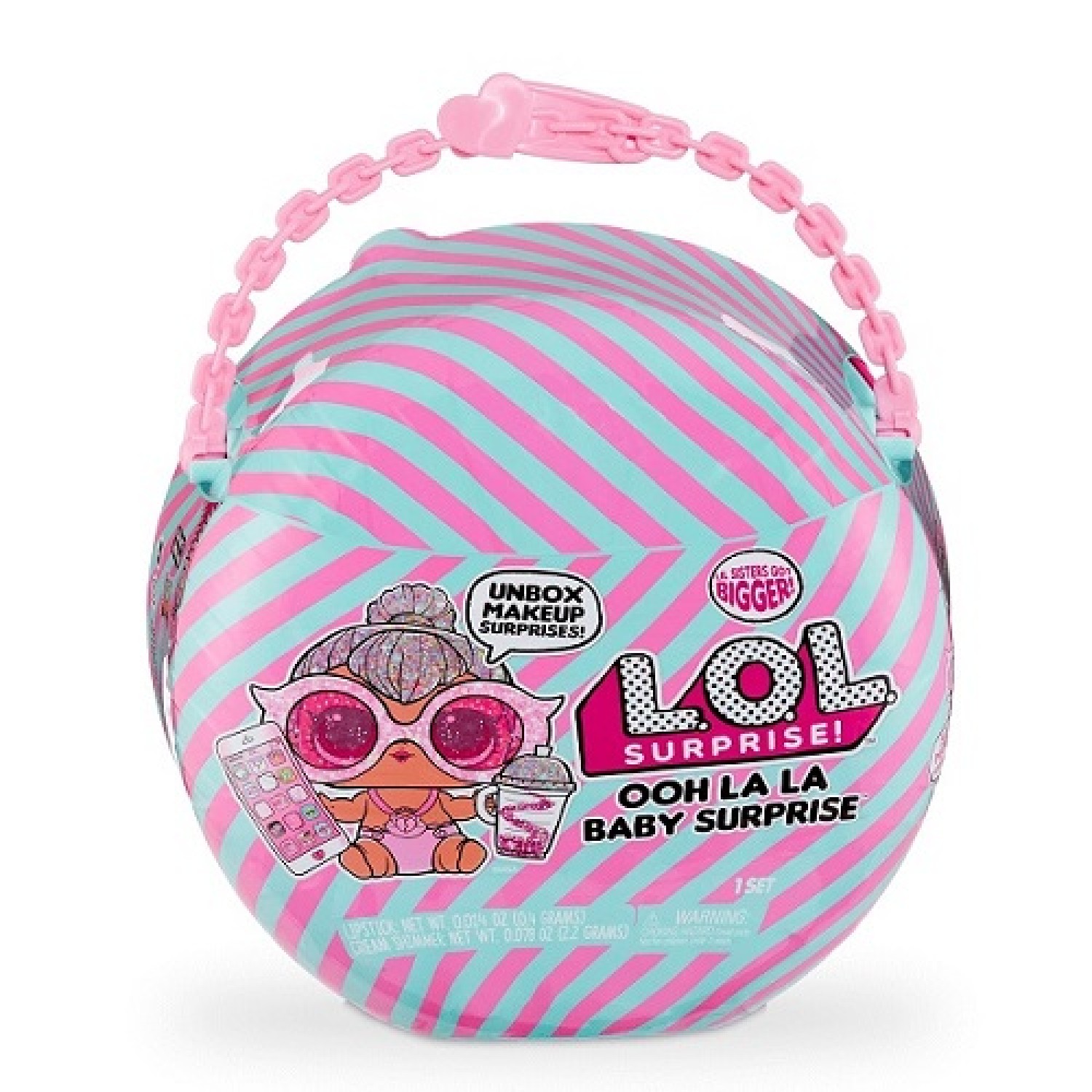Introduciendo L.O.L. ¡Sorpresa! Ooh La La bebé sorpresa, con hermanas Lil como nunca las has visto antes. Esta versión más grande de Lil D.J. Viene en un bolso de caja de auge ferozmente de moda para usted. Desempaquete tantas sorpresas de maquillaje y ropa, y comparta, incluyendo un collar de chupete con brillo de labios con cambio de color, y un teléfono celular que tiene 4 colores de brillo en el interior. Lil D.J. También viene con una botella llena de brillo que desaparece. Empaque todos los accesorios en el bolso fabuloso para llevar su maquillaje y muñeca sobre la marcha. Recoge los 3 L.O.L. ¡Sorpresa! Ooh La La bebé sorpresa, incluyendo a Lil Kitty Queen y Lil bon Bon.