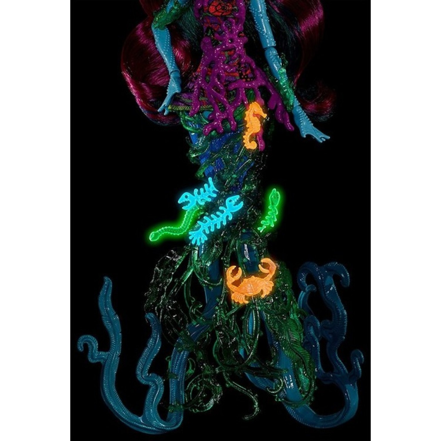 Haz olas de monstruos con dos monstruos Personajes altos del mar. Se los puede encontrar ayudando o obstaculizando a los ghouls en su viaje a través del Gran Arrecife Scarre. Posea Reef, hija de Poseidón, crea un toque distintivo en su firma con un corpiño floral, acentos de coral y joyas aterradoras. Una cola de alga marina y tentáculos. El incomprendido Kala Mer'ri también tiene brillantes tentáculos que actúan como un soporte, ¡así como dos fangtastic juegos de brazos! Impresiones de inspiración subacuática, cabello rayado y joyas aterradoras completan su aspecto asesino. Cada uno se vende por separado, sujeto a disponibilidad. Los colores y las decoraciones pueden variar.
