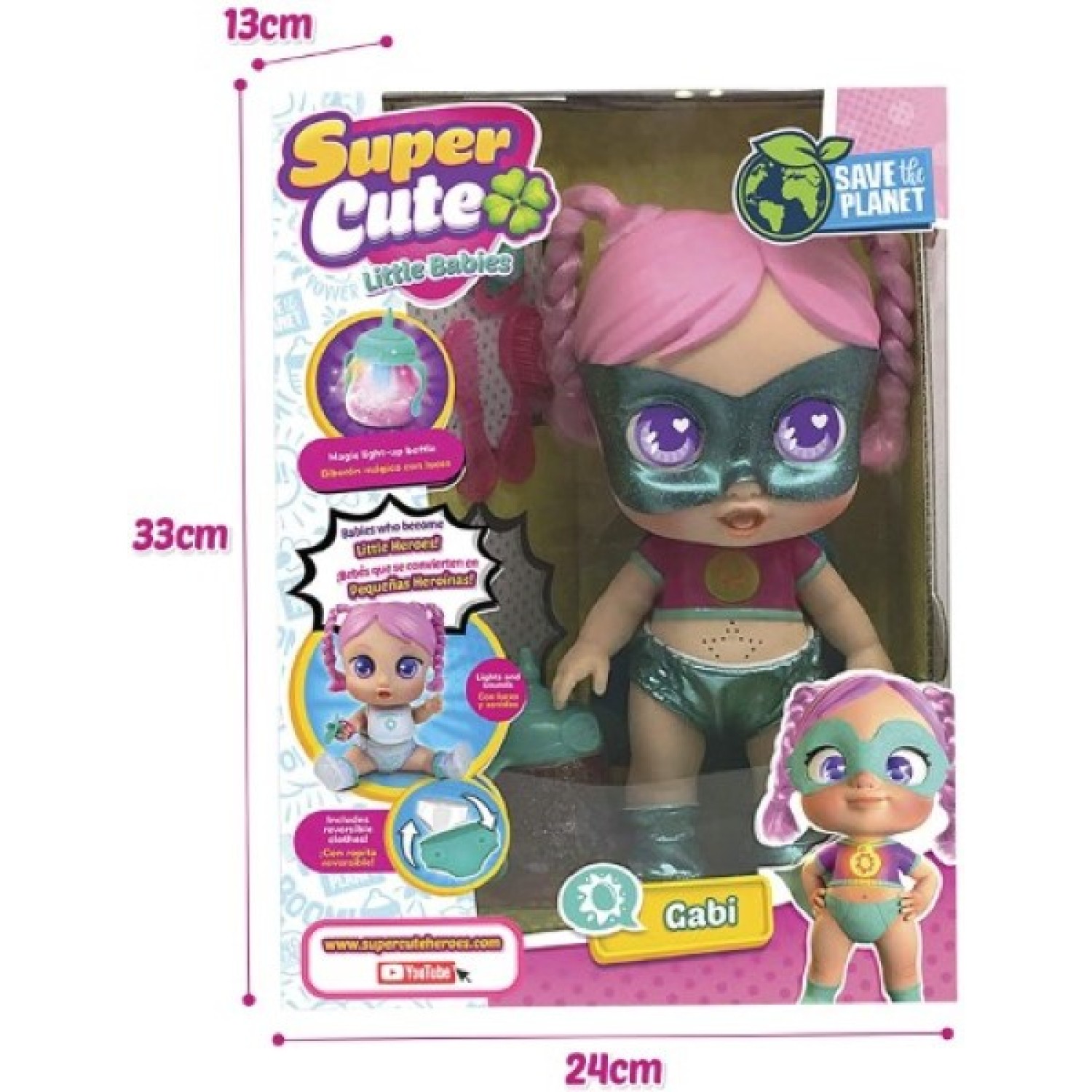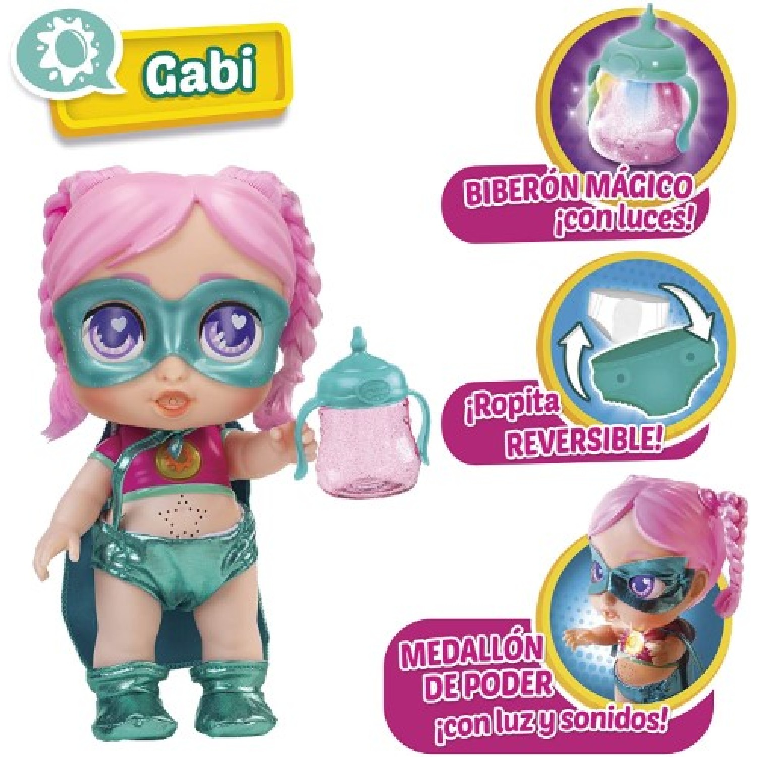 Muñecas Bebés de 24 cm con luces y sonidos, las cuales se transforman en super heroínas. Con tetero mágico, ropita reversible y medallón de poder